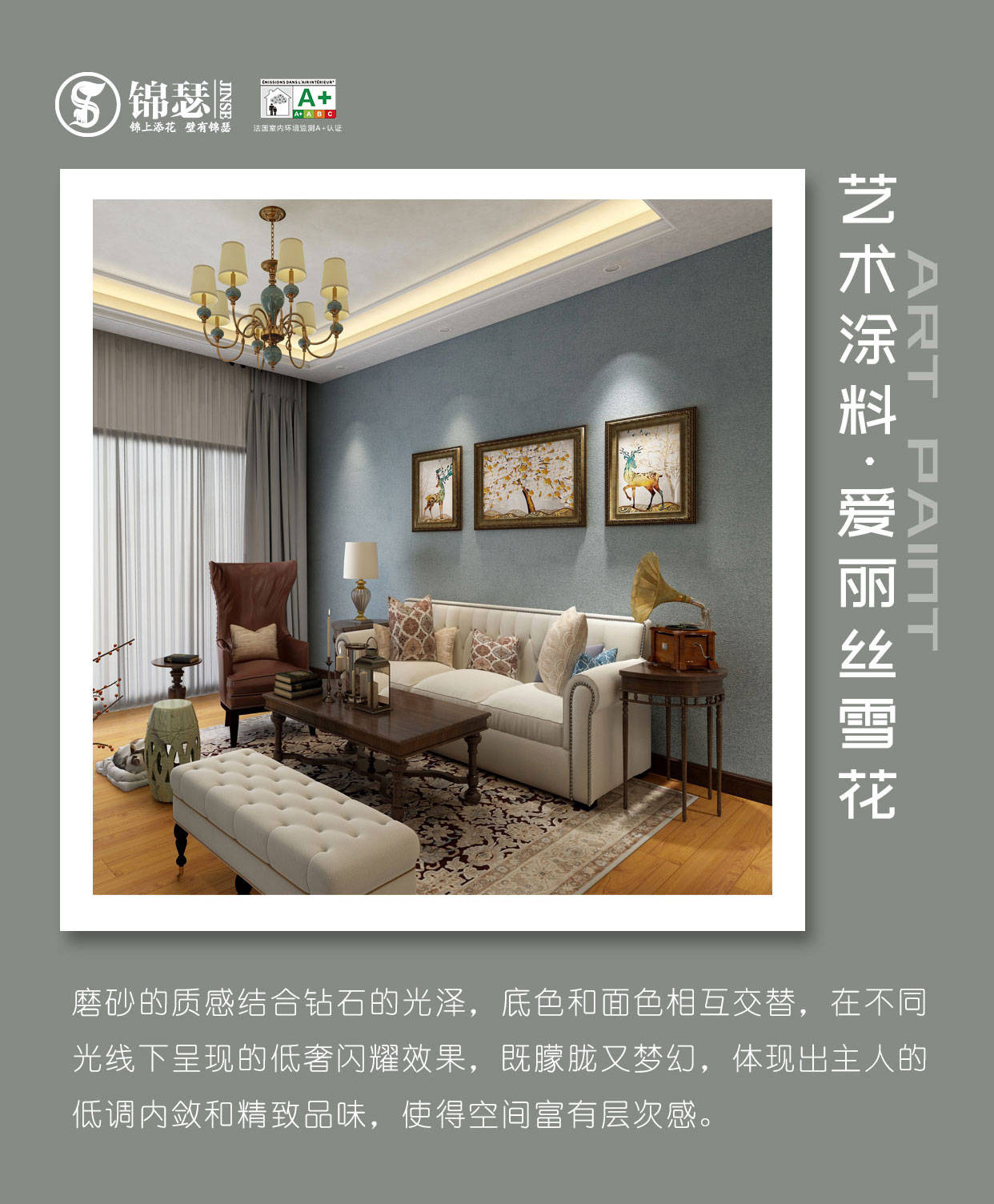 南京锦瑟艺术壁材以 站在重环保与艺术的角度为消费者提供专业的个性化的内墙环保定制壁材的品牌理念;